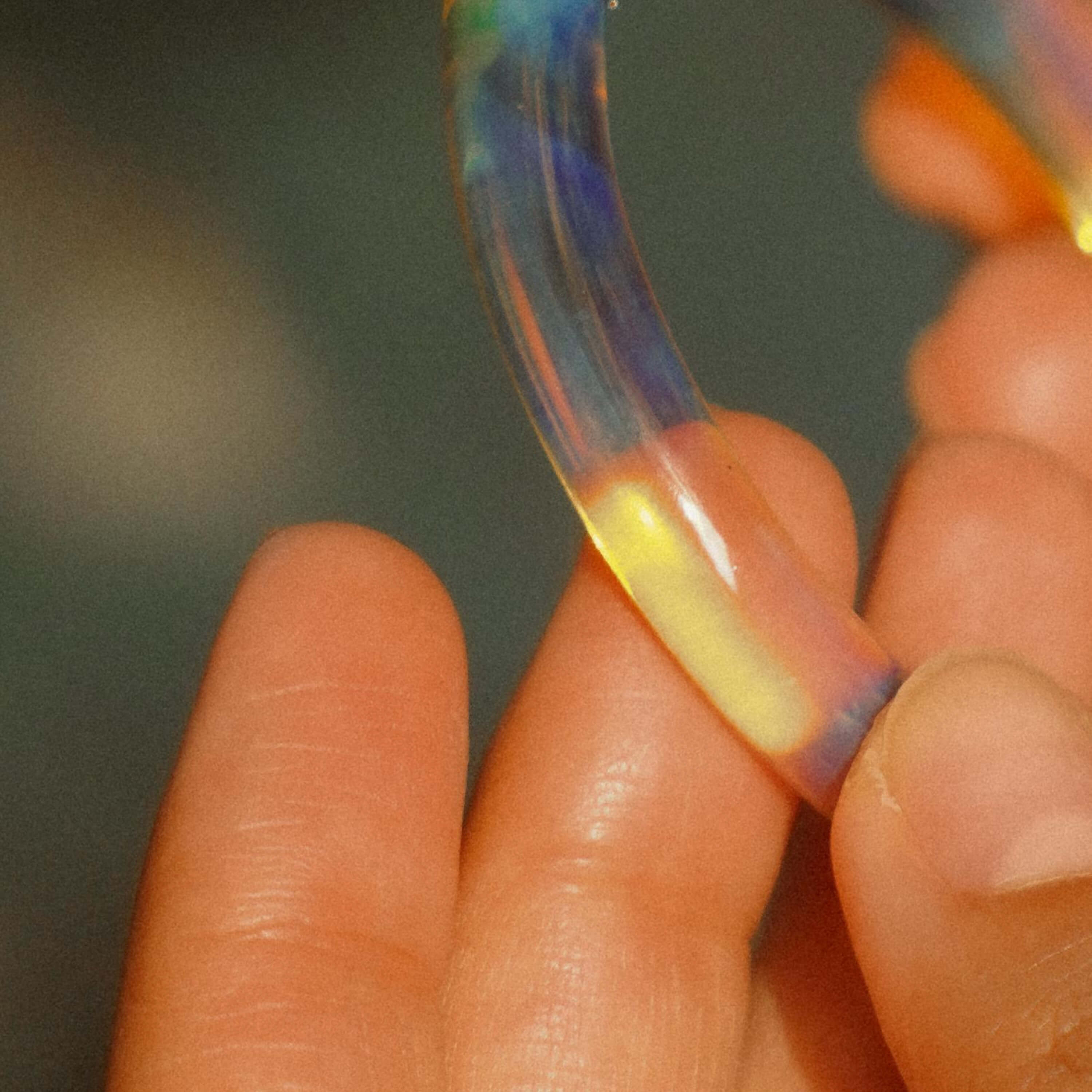 Much like every dawn and every dusk, each bangle is unique. Expect gentle variations in hue and pattern that dance with the light and change, that’s their charm. The silver settles on the molten glass in its own serendipitous way, bringing out different hues and patterns and making every bangle one of a kind.